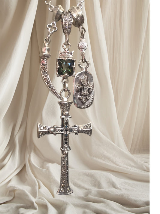 Necklace - Diamond Cross Triple Charm