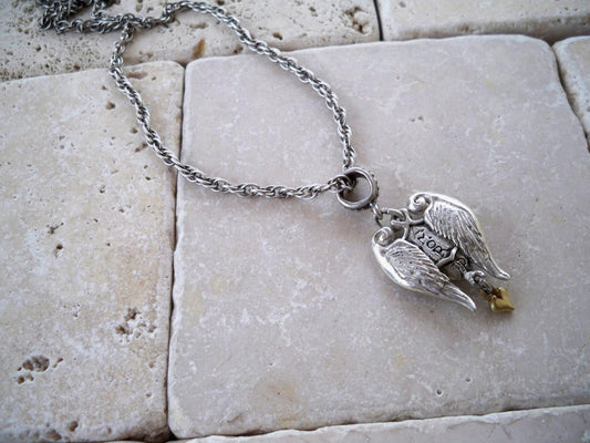 Sterling Silver Amor Angel with 18k Gold Heart Necklace