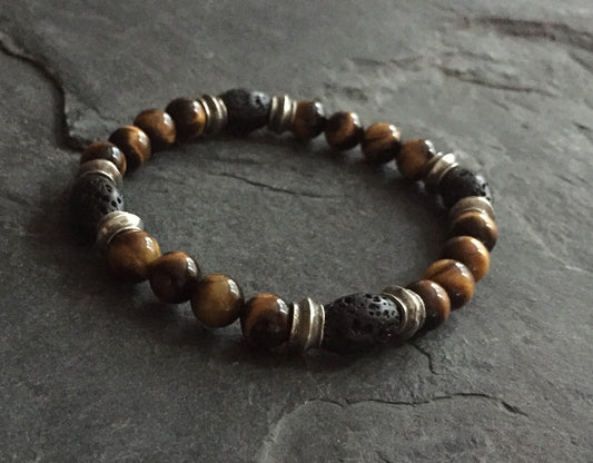 Bracelet - Sterling Silver Roundel & Tiger Eye w Lava