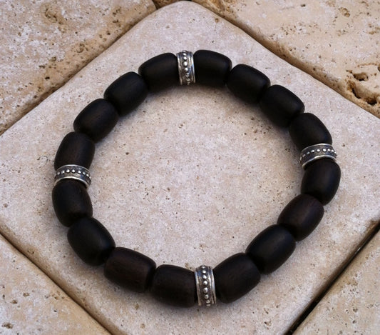 Bracelet - Ebony Wood Beads with Sterling Silver