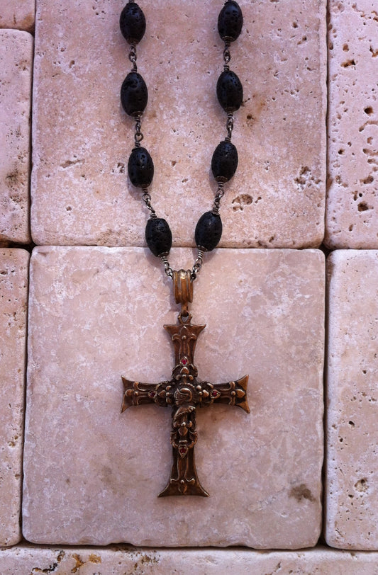 Bracelet - Bronze Roman Cross & Turquoise w Eboney