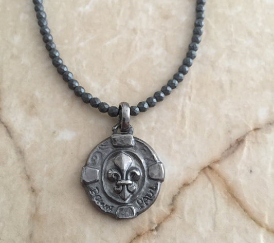 Gold & Silver Fleur de Lis Emblem with Diamonds