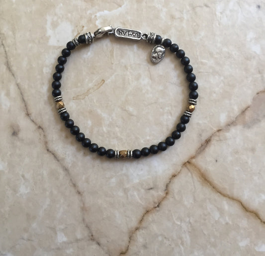 Bracelet - Lava, Pyrite & Silver Roundels with Ebony Wood
