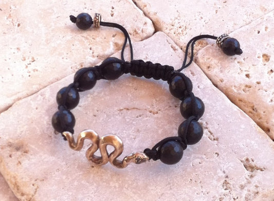 Bracelet - Bronze Skull with Diamonds & Hematite