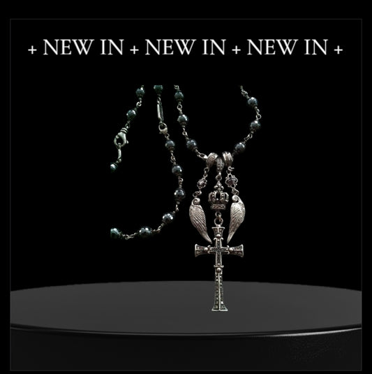 Sterling Silver Triple Cross with Crowned Lolite Centerpiece on Silver Chain