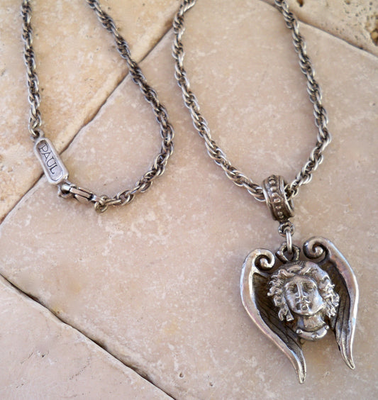 Sterling Silver Amor Angel with 18k Gold Heart Necklace