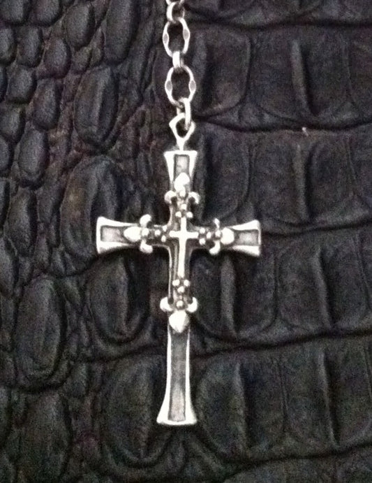 Rosary Style Bronze Cross Necklace with Garnet & Silver Beads