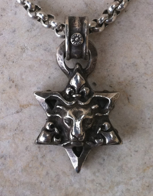 Sterling Silver Diamond & Ruby Pave Fleur De Lis Medallion with Crowned Heart
