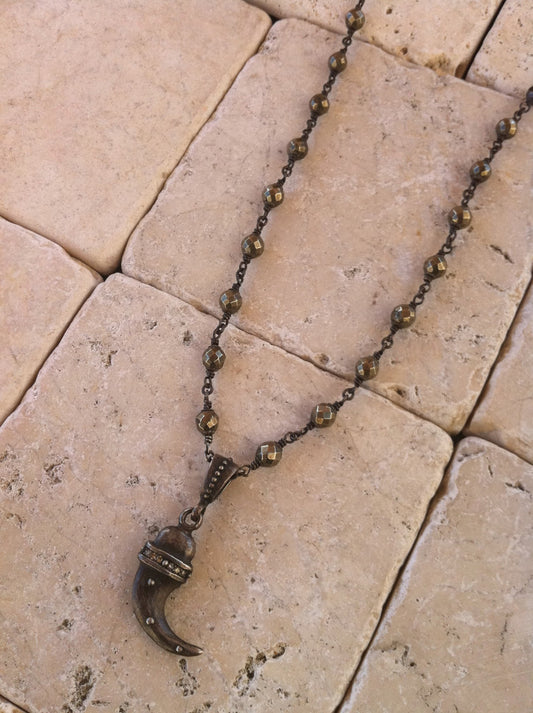 Sterling Silver Horn with Champagne Diamonds and Pyrite Beads Necklace