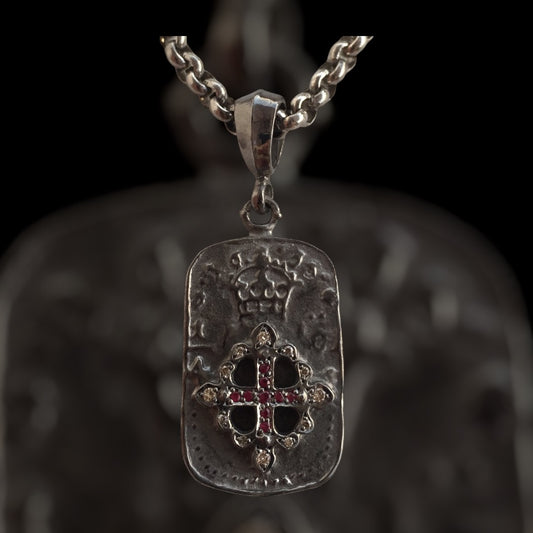Necklace - Dog Tag with FDL Diamond & Ruby Cross