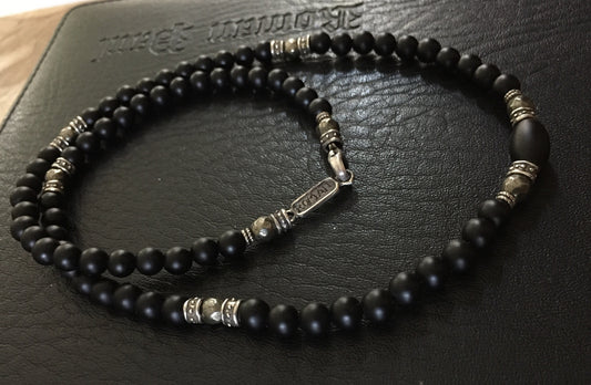 Necklace - Silver Roundel, Ebony, Onyx, Pyrite