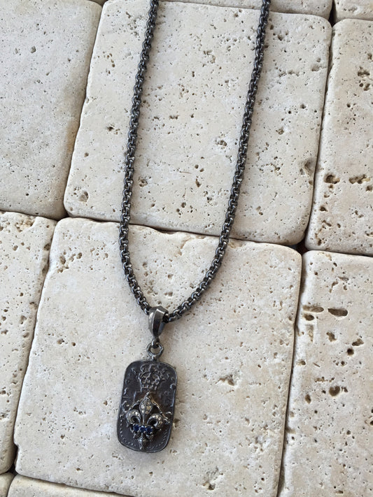 Sterling Silver Fleur de Lis Emblem with Diamonds and Sapphires