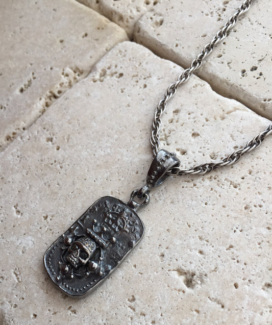 Sterling Silver Skull & Crown DogTag with Diamonds