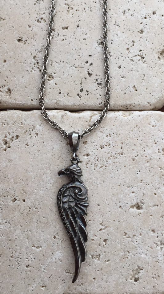Sterling Silver Eagle Wing & Eagle Head with Black Diamonds