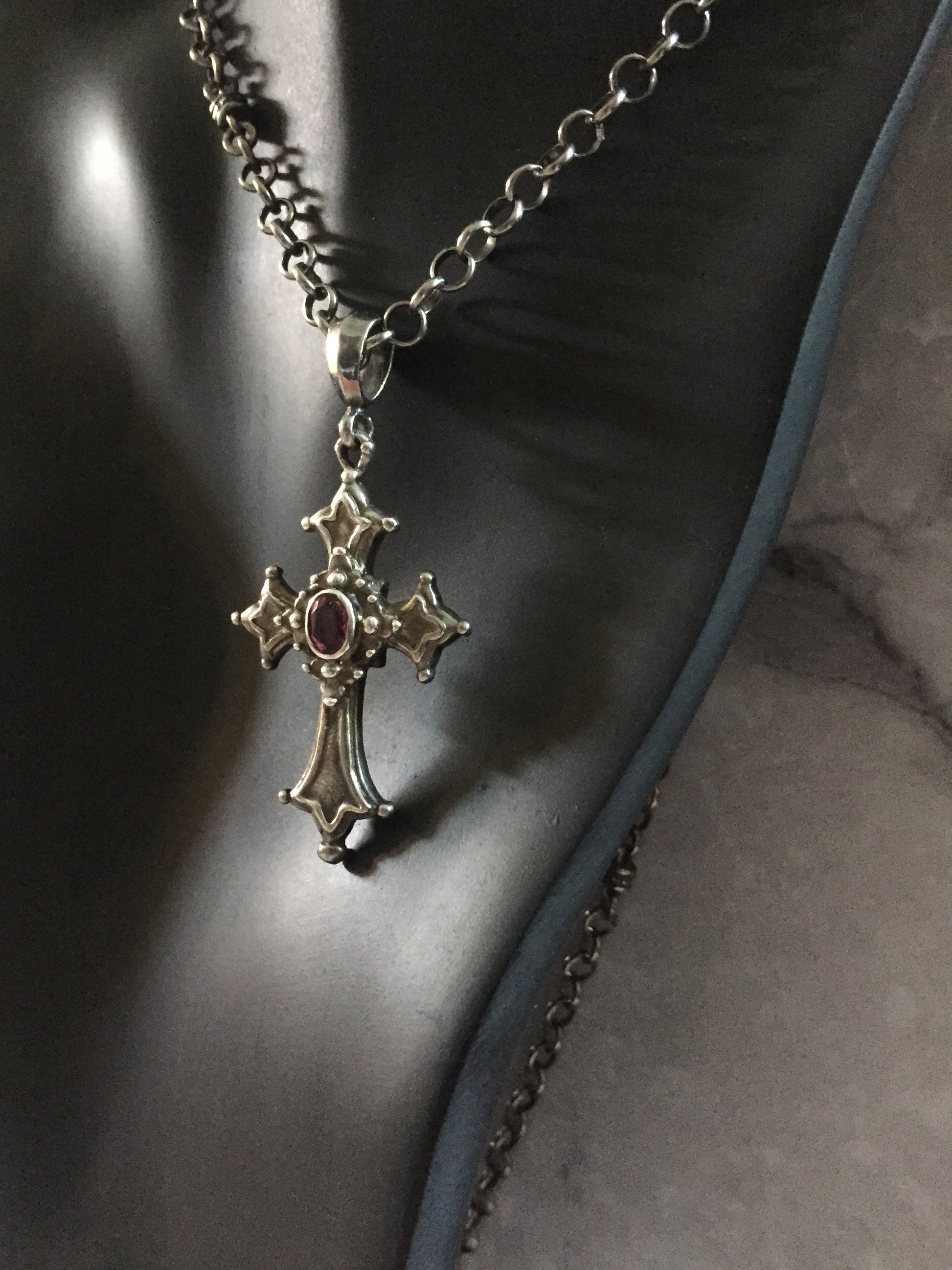 41% off Discount code:1C7TTP7MR8Q7 sterling silver cross with pink tourmaline. Sterling silver chain with silver roundels.