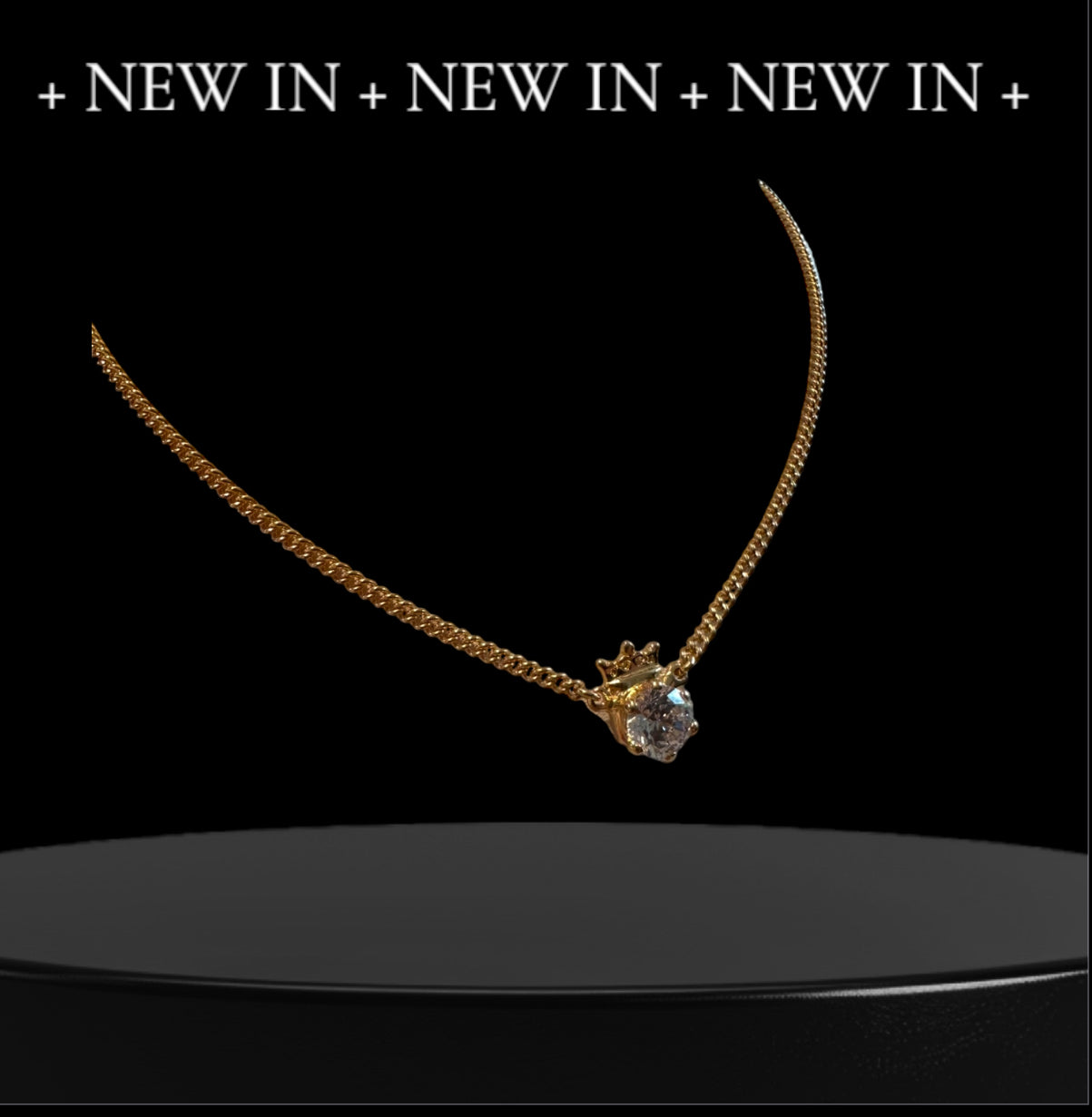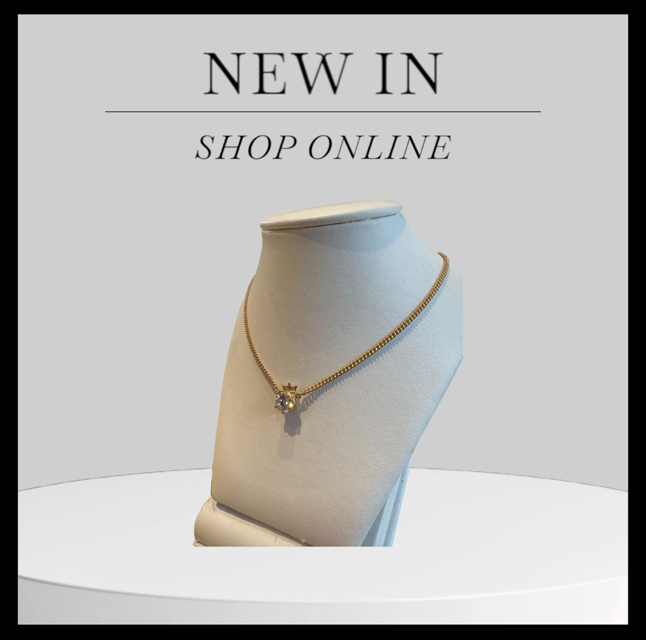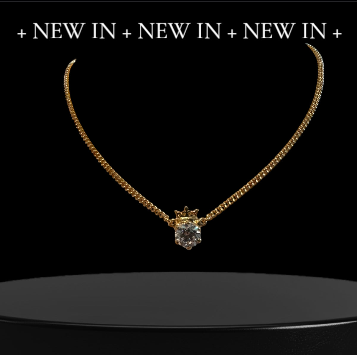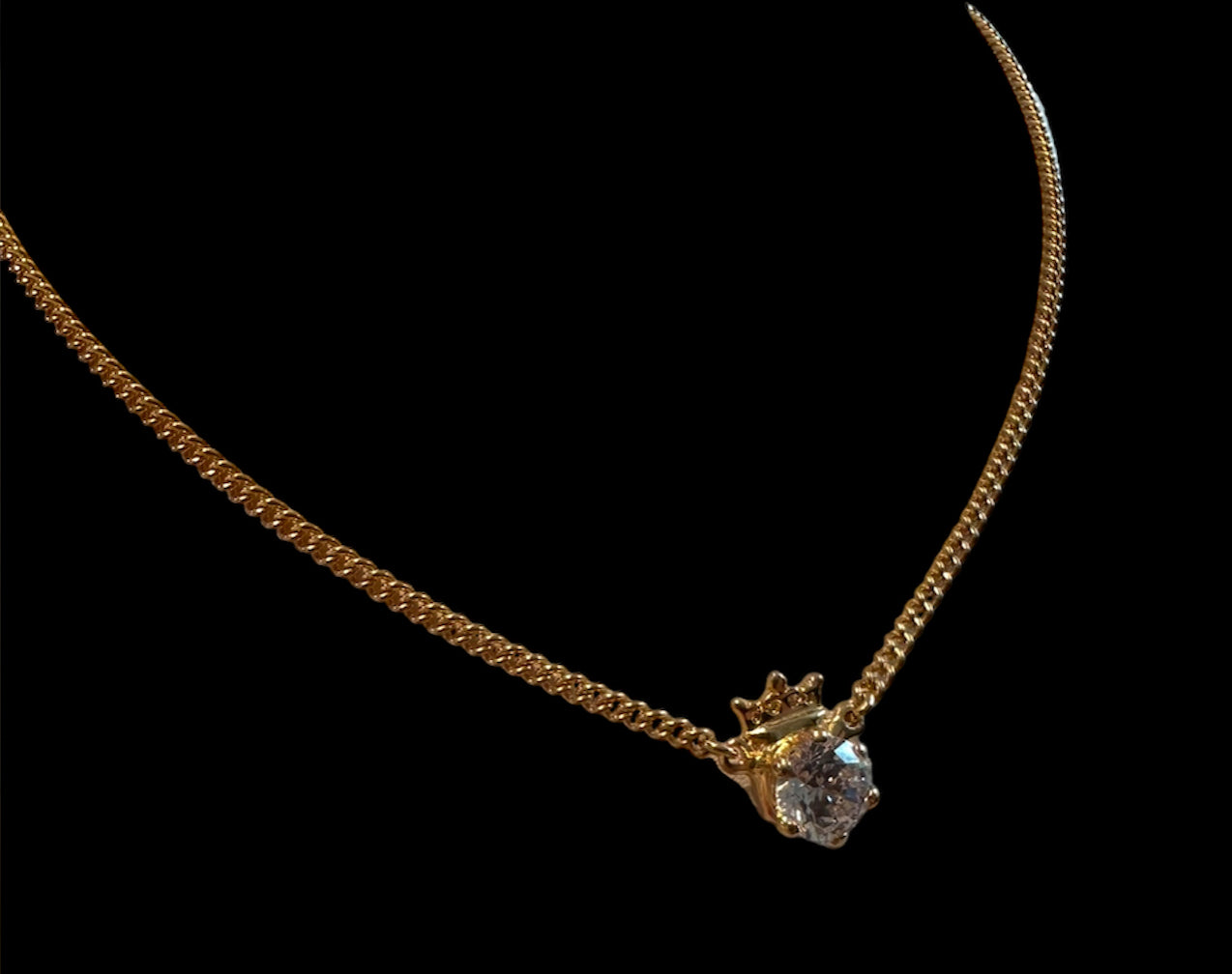 set with 8mm white diamonik CZ. Necklace is 16 inches long.