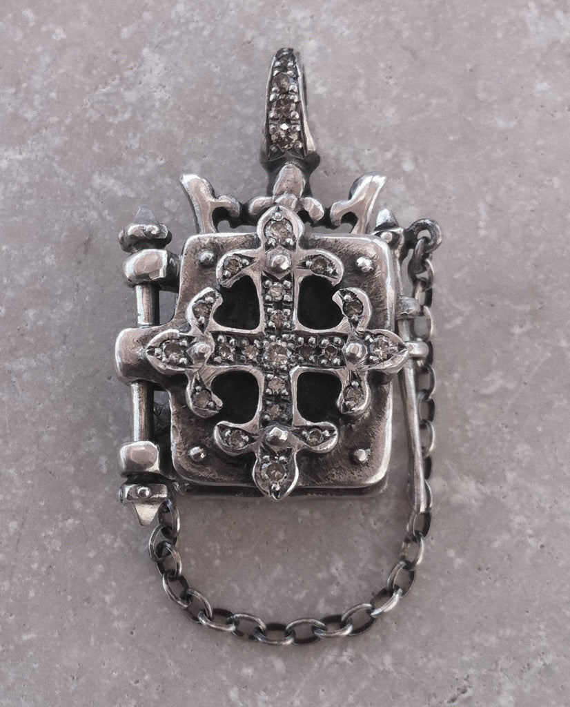 Sterling silver locket book with crown set with 25 champagne diamonds. Locket measures approx. 1-1/4 inch toll and 3/4 of an inch wide. Lo - cross/diam