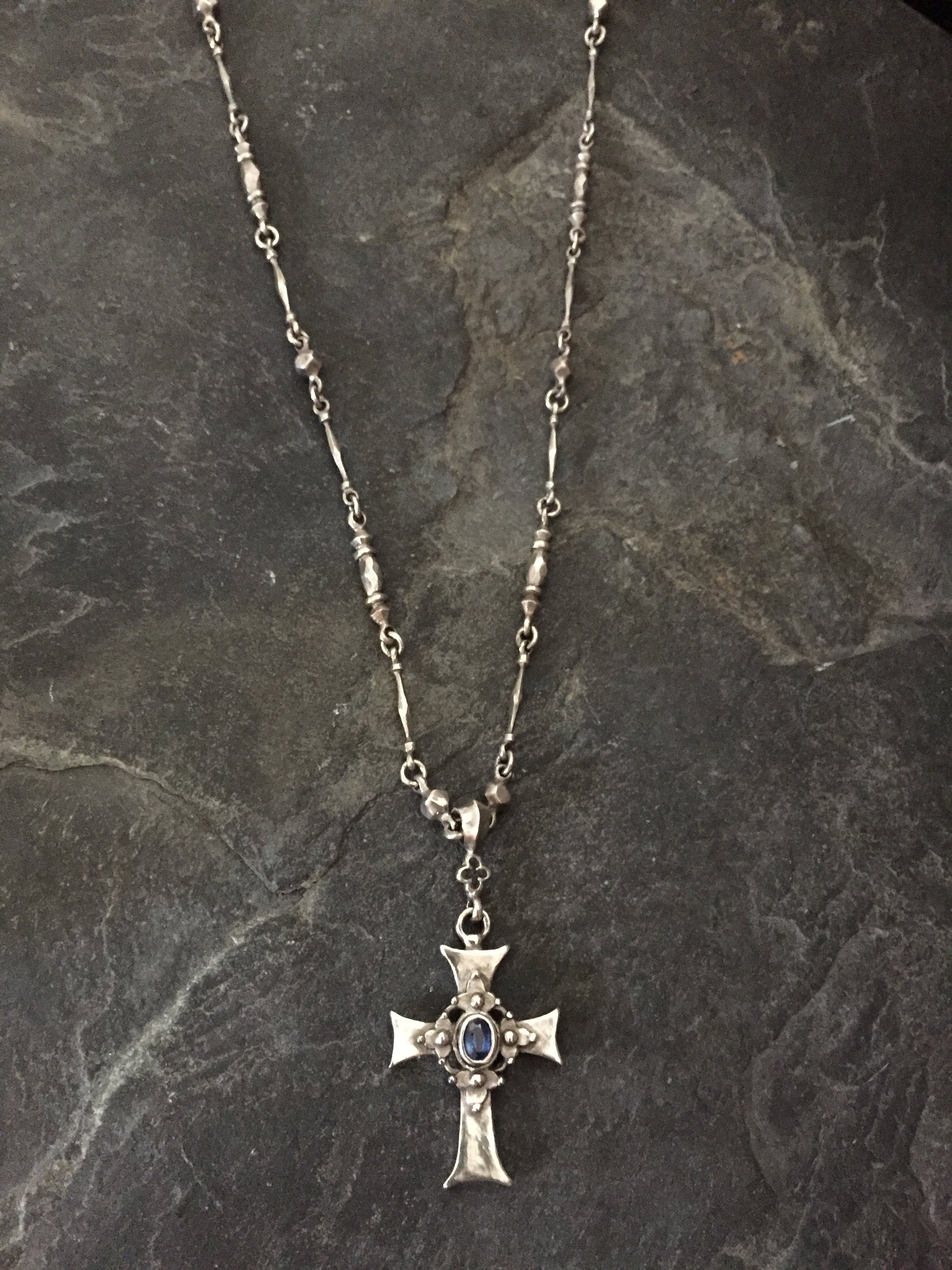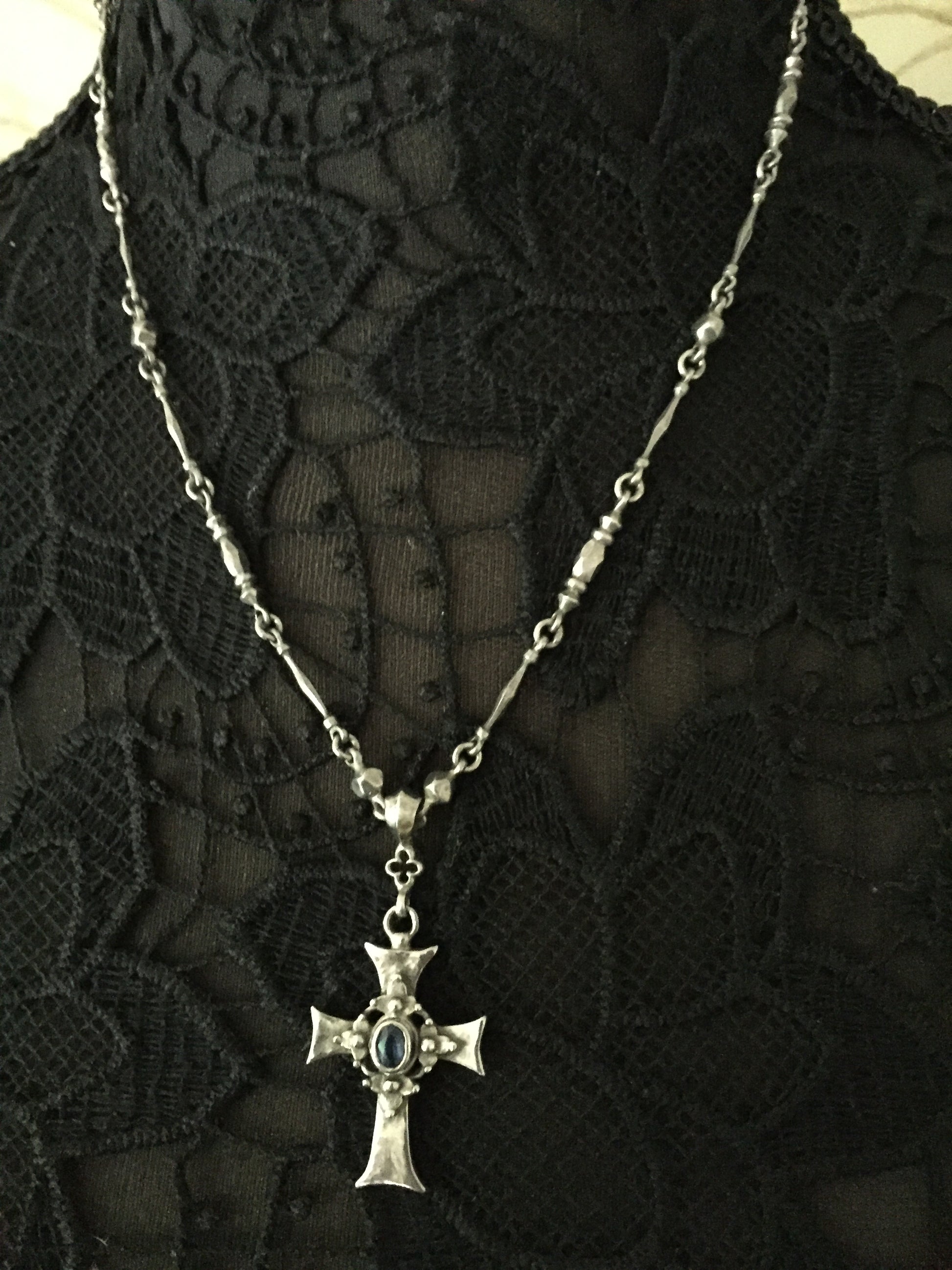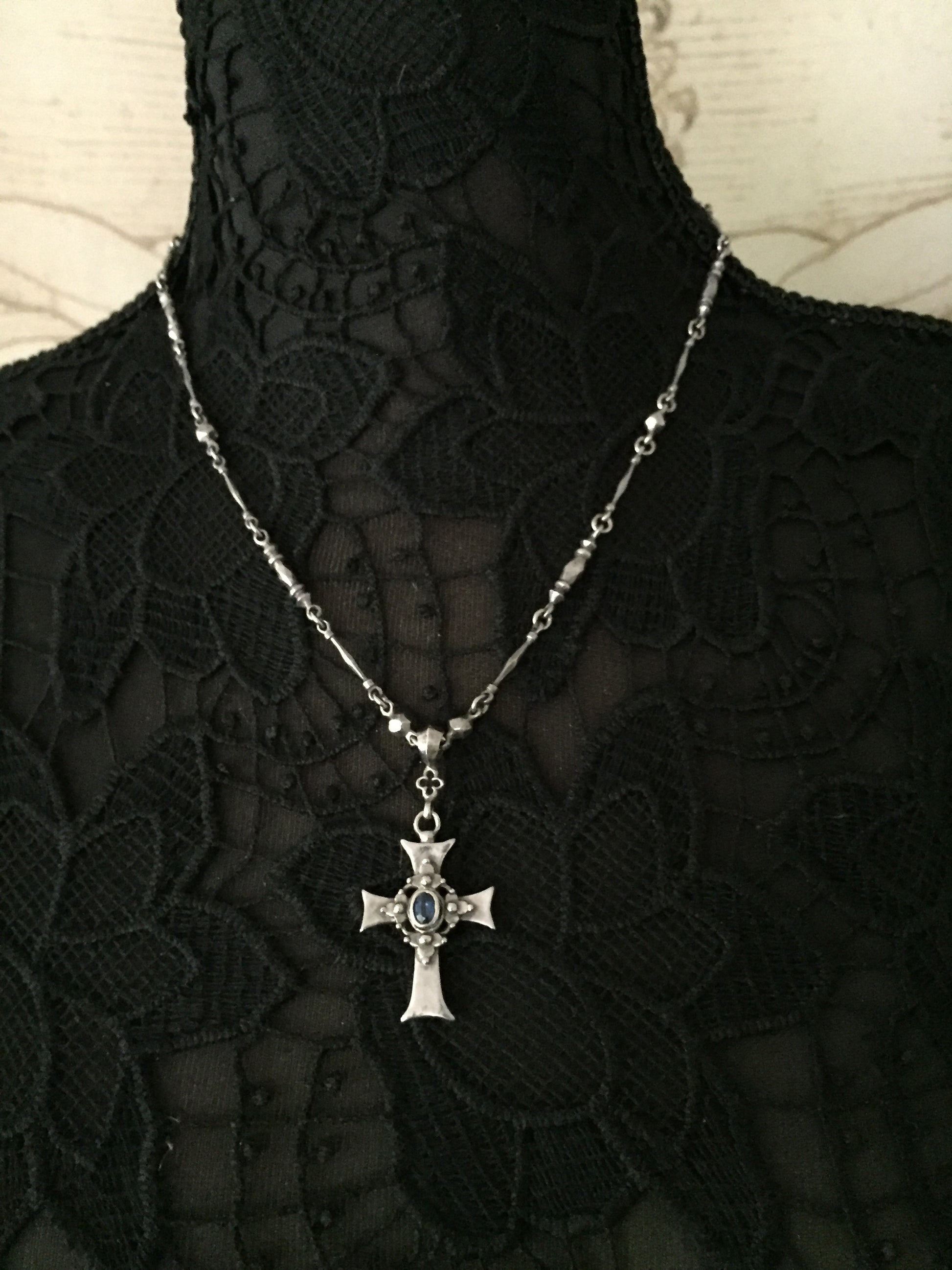 Platinum over sterling silver gothic cross with iolite. Iolite - Metaphysical Healing Properties. Iolite can Unleash Healing Energies if used correctly.