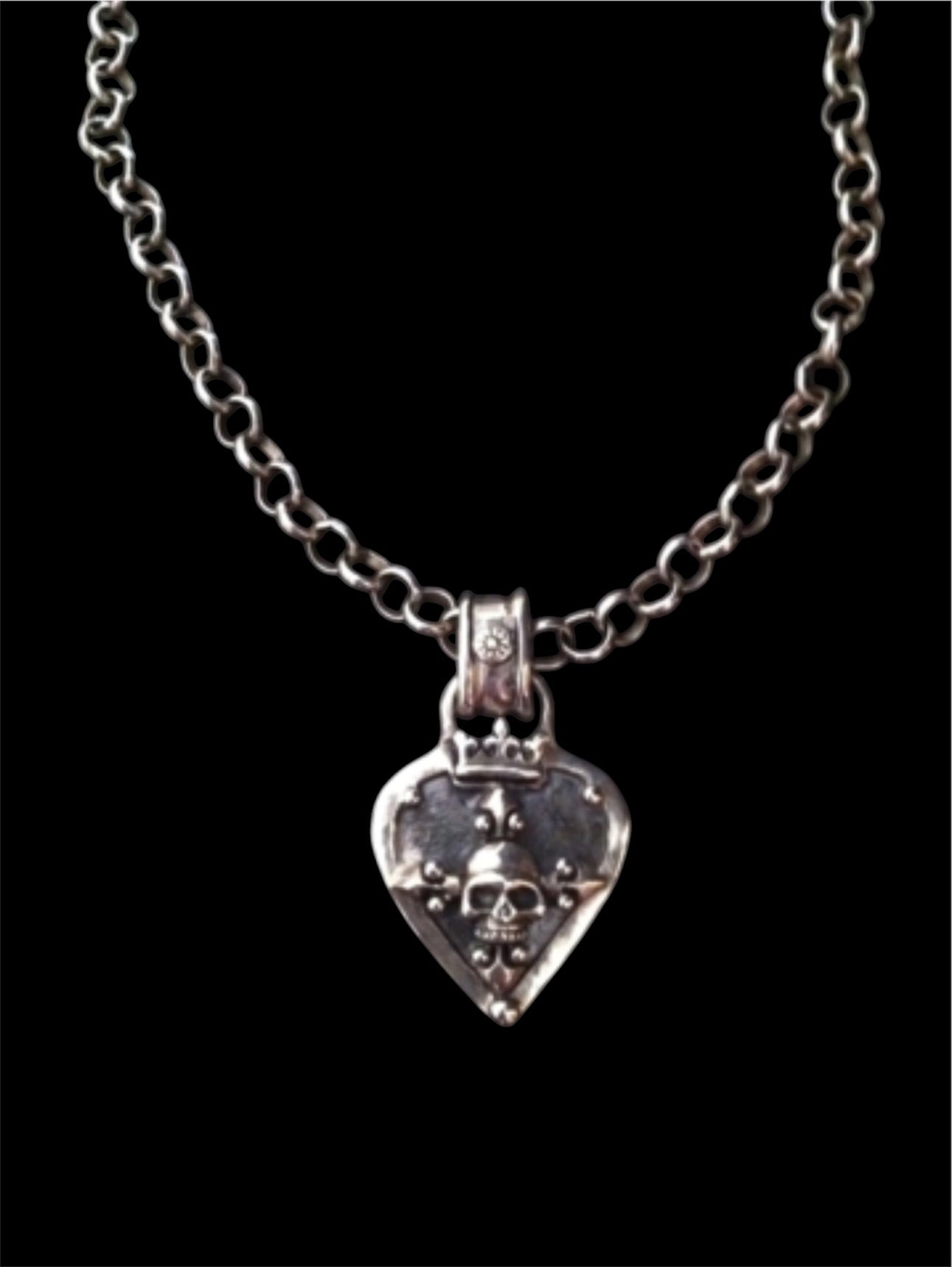 Sterling silver guitar pick w skull. KENNY CHESNEY is wearing this necklace. The necklace is 22'' (average man's size )inch long sterling silver rolo chain with lobster clasp. The pendant is approx. 1.5 inch tall and an inch wide. Original design.The country music superstar singer. N 1336 ss 0248